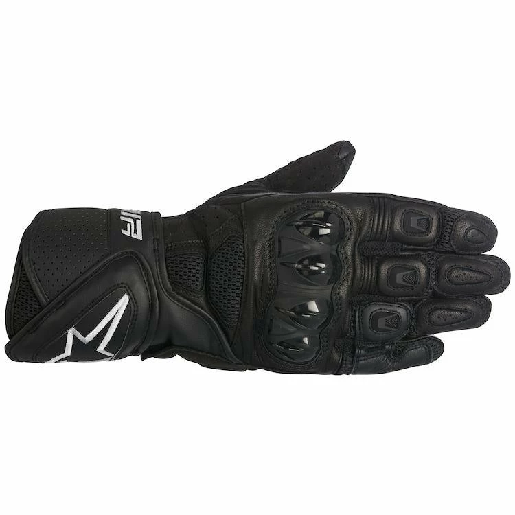 The Alpinestars SP Air Gloves give sport riders some warm weather relief with strategically perforated full grain leather and 3D mesh for maximum airflow. Protective features from Alpinestars’ race gloves are integrated into the SP Air in the form of polymer hard knuckles, palm sliders and a reinforced landing area. Improved ergonomics give the SP Air Gloves all-day riding comfort.