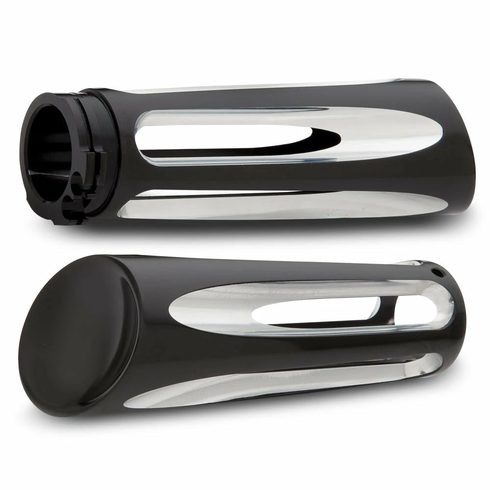Arlen Ness was the first billet grip manufacturer; these original styles are machined from 6061-T6 billet aluminum. Features: Roller bearings are pressed into each other cable style grip, allowing for smoother function and less frictionÂ. Sold in pairs Black anodize finish. Fitment: Cable style Fly by Wire