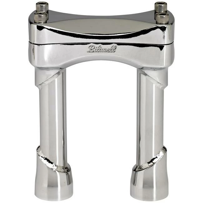 Overview: Murdock risers feature investment-cast steel top clamps and lower threaded bases, and are connected by two 1-inch O.D. x 0.120” (3mm) wall seamless 4130 chromoly tubes. After TIG welding the finished unit is hand polished and triple chrome or satin black plated for style and durability. The threaded bases on Murdock risers are on 3.5” (89mm) centers to fit most stock and aftermarket H-D triple trees with removable bar clamps. Of course, the bolt pattern on the Biltwell Murdock riser’s one-piece handlebar clamp fits stock H-D speedo and tach brackets. 1/2-13 threaded holes on mounting bases accept stock H-D hardware.