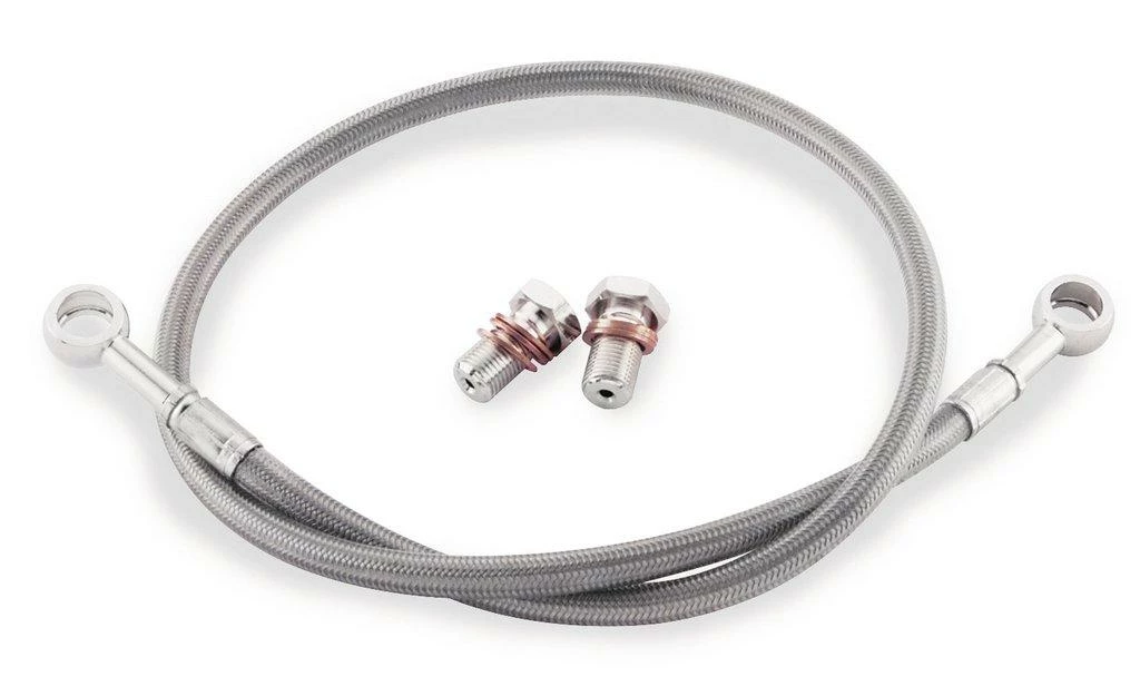 Stainless Steel brake lines are typically the first brake upgrade you should make. Stock rubber lines will break down and expand, causing a spongy brake feel or worse. Steel lines eliminate expansion which results in consistent feel and performance.