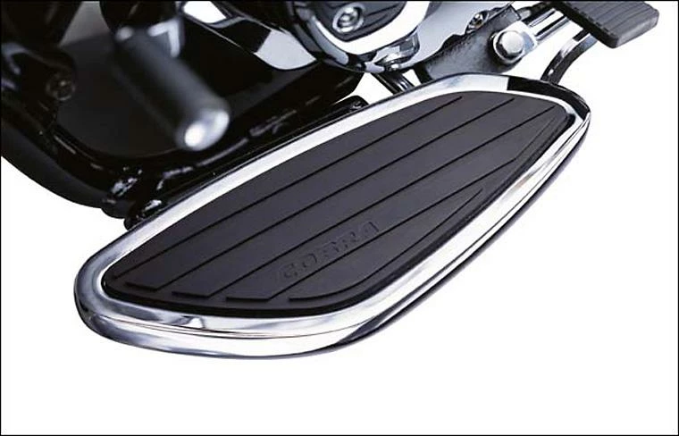Same great design as our Billet Swept floorboards only crafted out of economical and durable steel. Show chrome plated with high density rubber inserts help reduce vibration and fatigue.