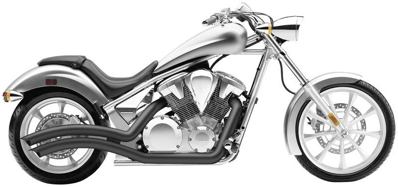 - Curved lines of the exhaust pipes echo the sweeping top line of motorcycles