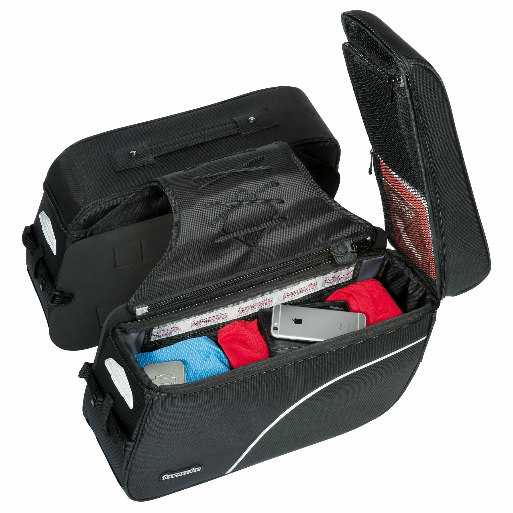 - Saddlebag-to-yoke zipper allows easy removal of the bags without removing the entire system