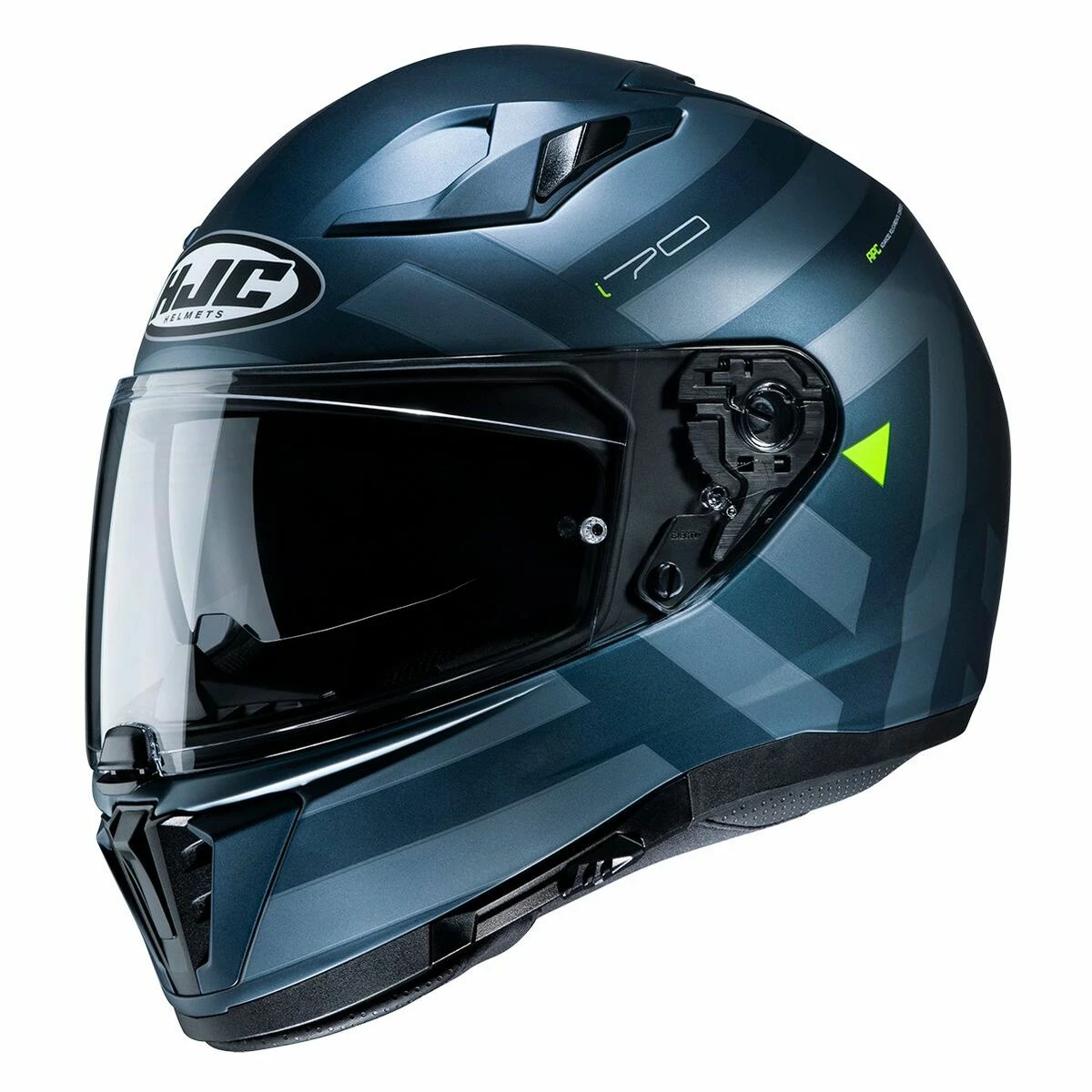 The i70 is a modern and sleek sport-touring helmet composed of HJC’s advanced polycarbonate material. The full-face shell is noticeably more compact and lighter than its predecessor, the IS-17. The i70 features an inner, drop-down sun visor with a new, easy-to-use lever. Top vents optimize ventilation into the interior air channels and out through the exterior exhaust vent with an aerodynamic spoiler design.