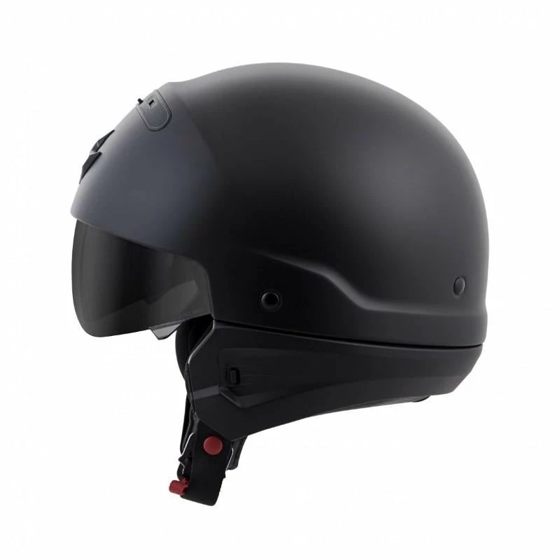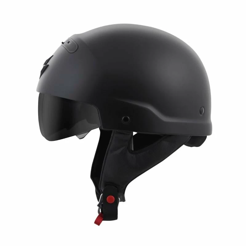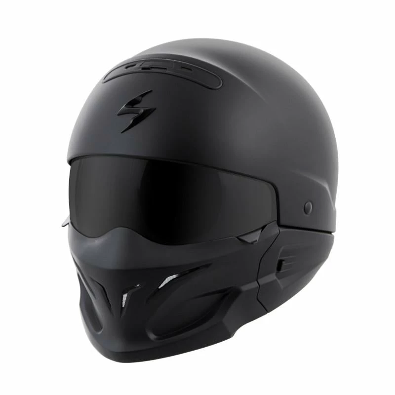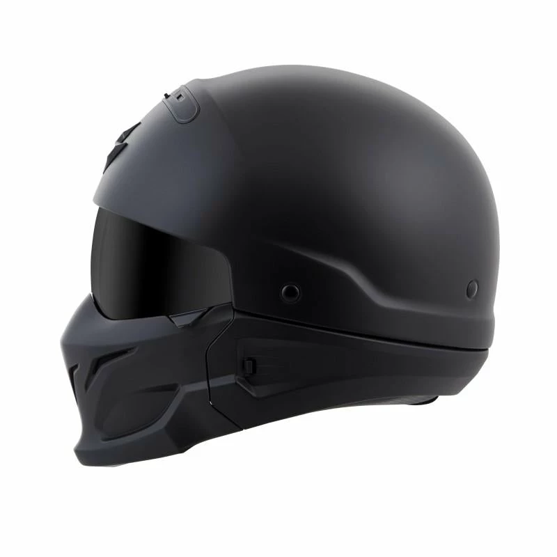 Meant to disrupt the norm, this radical design can be converted to work with any type of bike. We started with a half helmet and added an integrated drop- down sun visor for protection from sunlight. A rear comfort sleeve allows you to convert the helmet to a ¾ open-face and then attach the included front mask and you’ve got one, aggressive “bad ass” looking helmet.