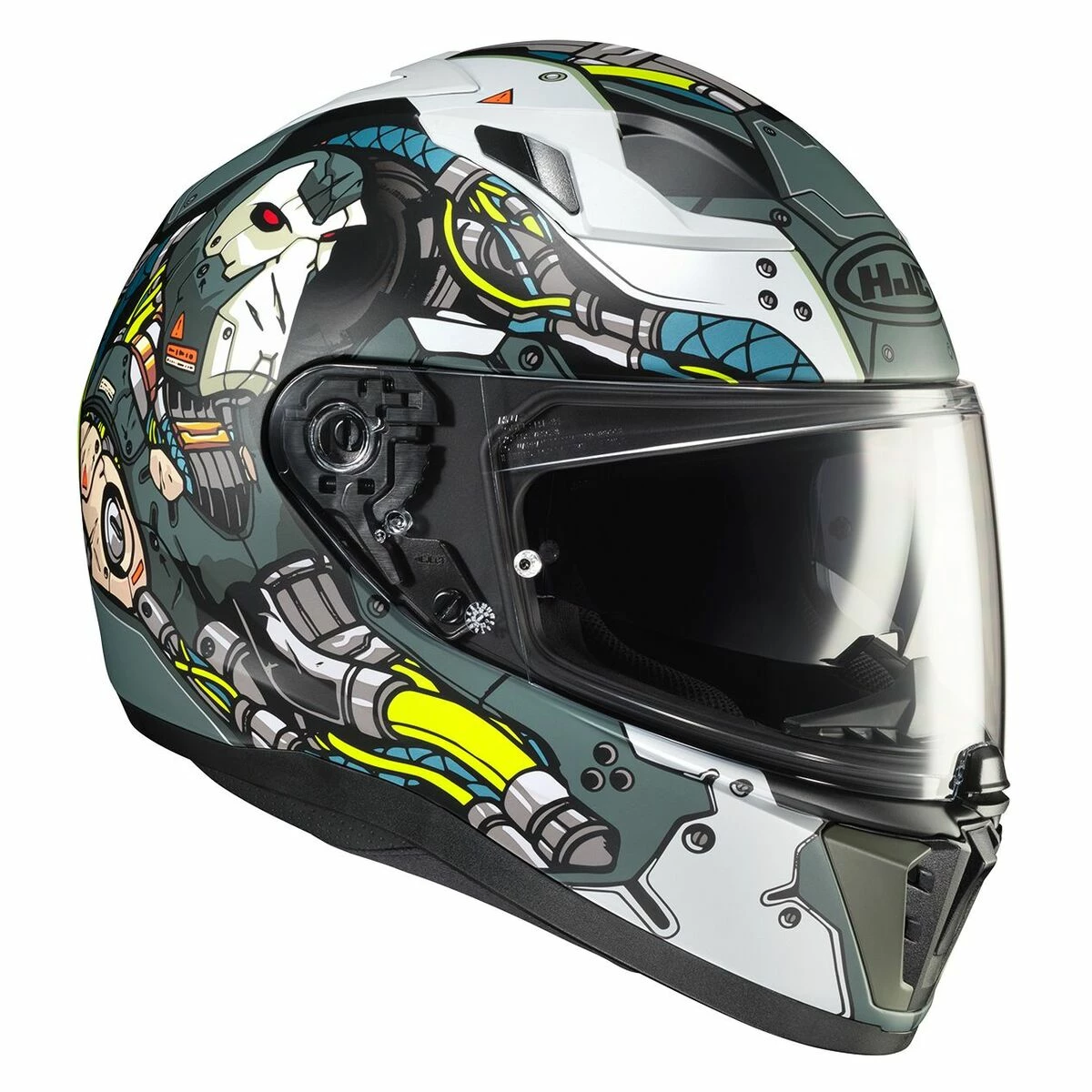 The i70 is a modern and sleek sport-touring helmet composed of HJC’s advanced polycarbonate material. The full-face shell is noticeably more compact and lighter than its predecessor, the IS-17. The i70 features an inner, drop-down sun visor with a new, easy-to-use lever. Top vents optimize ventilation into the interior air channels and out through the exterior exhaust vent with an aerodynamic spoiler design.
