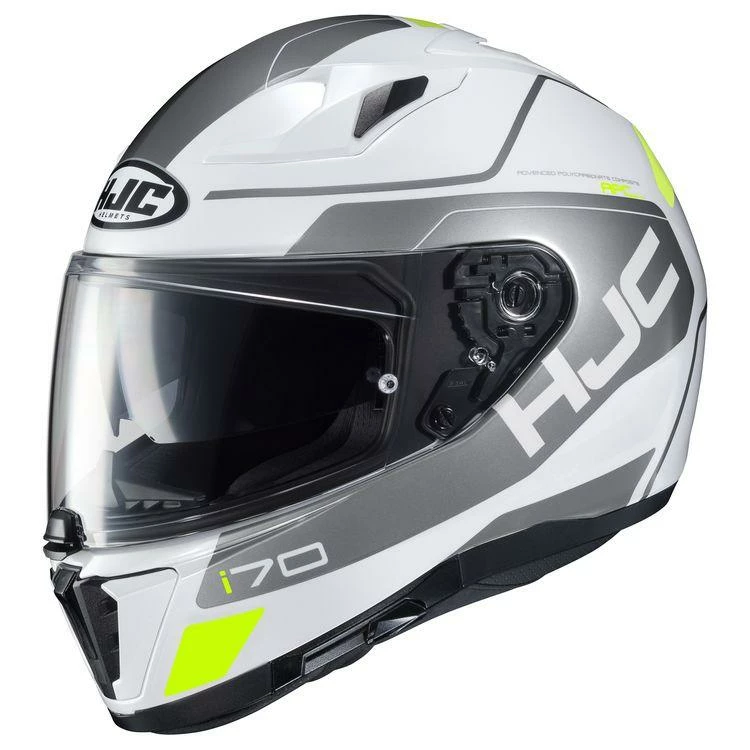 The i70 Helmet takes the place of the popular IS-17. Upgrades include reflective patches for added visibility and a center locking face shield. The HJC i 70 Helmet has 7 intake vents with 2 exhaust vents that are in the rear spoiler for optimum airflow. The inner sun shield has 3 positions and is anti-scratch and anti-fog.