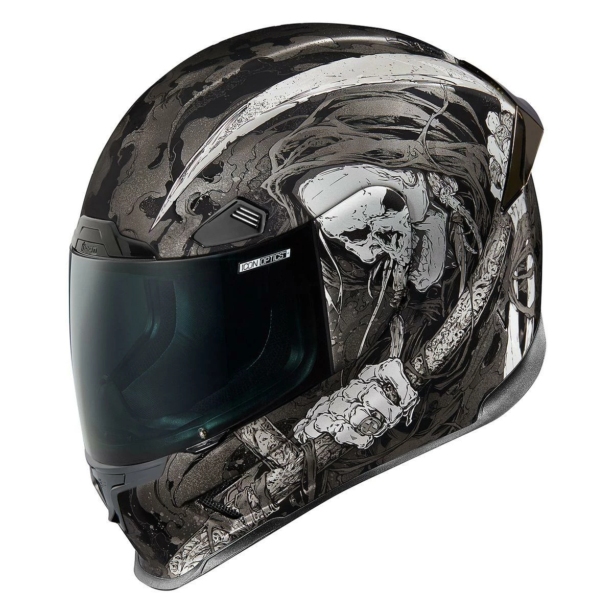 Includes Clear Fog-Free Icon Optics™ shield with Rapid-Release™ system and ProLock™ positive shield locking system. Dark Smoke Tracshield™ with tear-off posts also included.