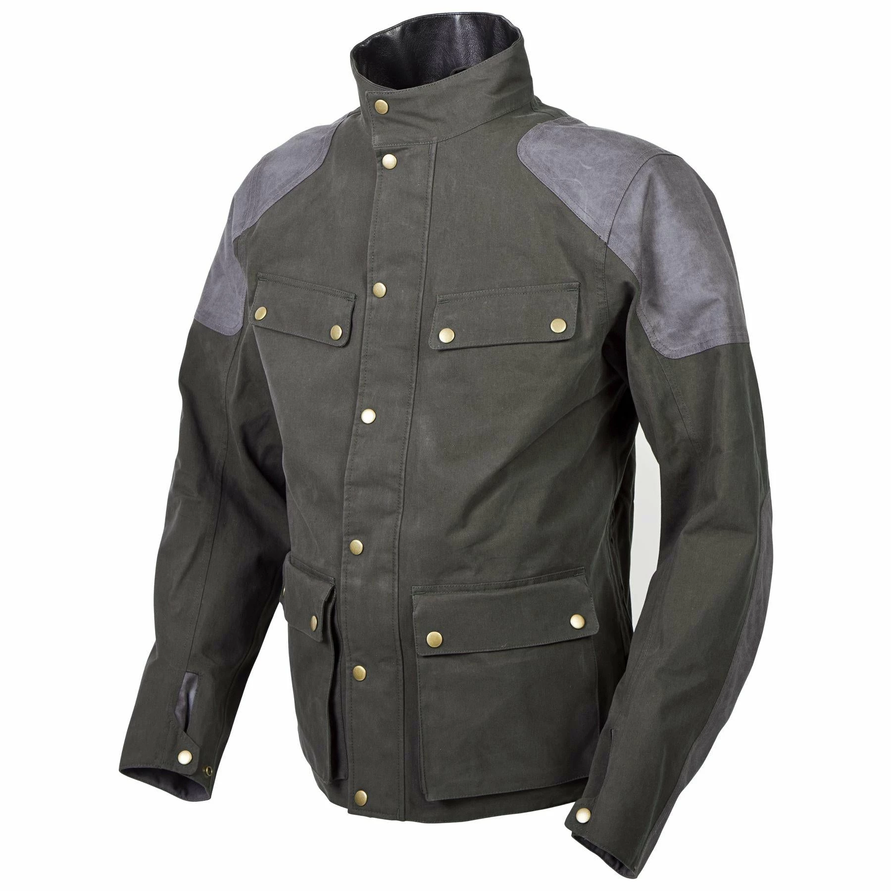 For years riders have known that the traditional waxed cotton riding jacket is hard to beat when it comes to comfort and protection from the elements. We’ve taken the traditional waxed cotton riding jacket and made it better. Starting with the outer fabric; we created our own waxed cotton fabric and strengthened it by weaving in nylon for abrasion resistance. Then we laminated a waterproof / breathable membrane to the back of it and seam taped all the seams, making this waxed cotton jacket 100% waterproof. So the next time you’re planning a cross county ride on your classic motorcycle, you get the best of both worlds, traditional looks and modern technology.