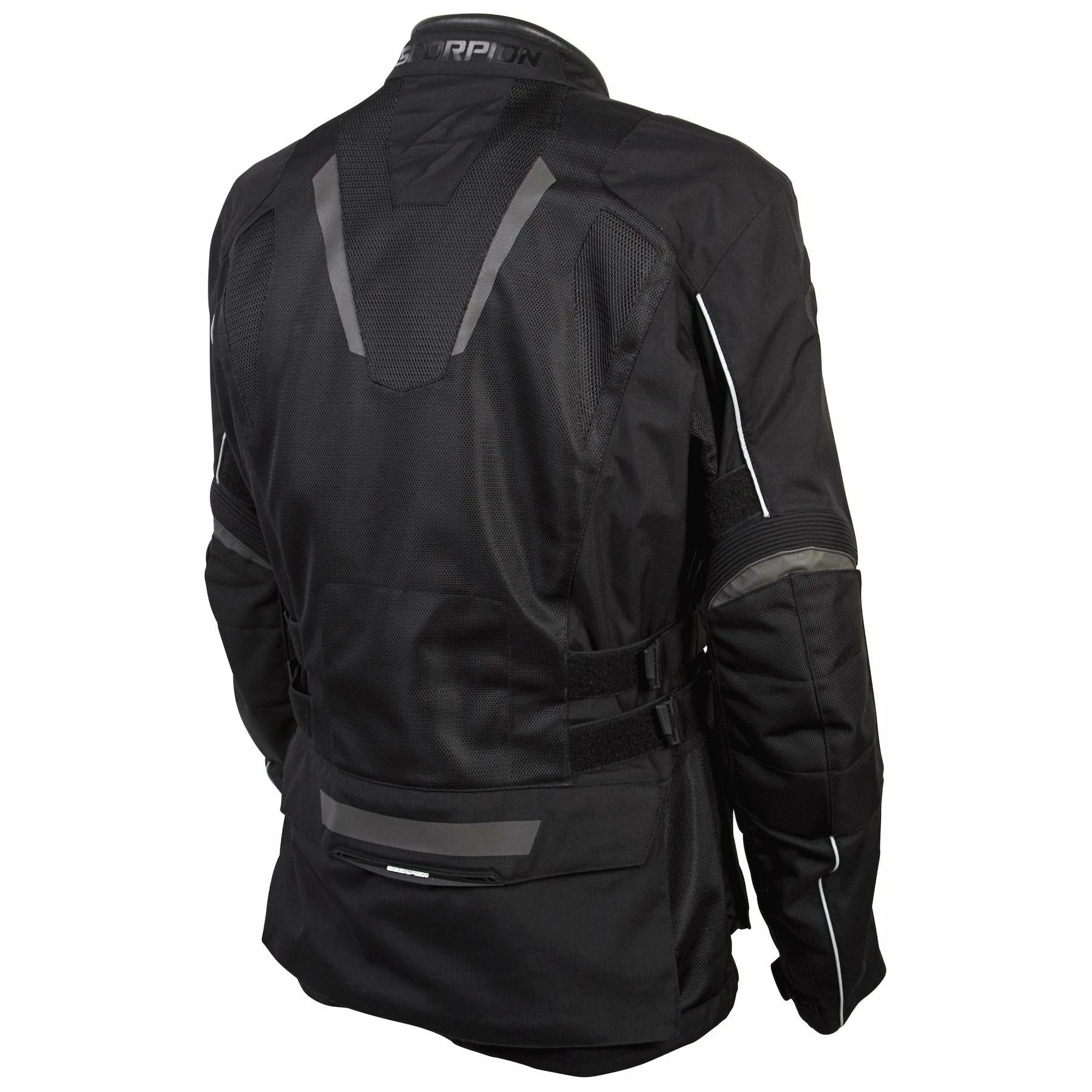 The Yuma jacket is an extremely ventilated, yet durable mesh touring jacket. The chassis of this jacket is 500 denier nylon. Abrasion zones are 1680 denier nylon. The large mesh panels in key areas are made out of a 250 denier with two different weave types to assure maximum ventilation. A moisture wicking, breathable polyester mesh lining keeps you comfortable. Additional features include large storage pockets, ample use of NighViz® reflective material, multiple adjustment points, and a removable H20 Blok® waterproof liner. Protection is provided by the use of SAS-TEC® CE certified armor in the shoulders, infinitely adjustable SAS-TEC® CE certified elbow pads, and PE foam back protector can be upgraded with the use of a SAS-TEC® CE certified Level 2 back protector. This jacket is also compatible with ScorpionExo®’ optional kidney belt for additional support and lower back protection.