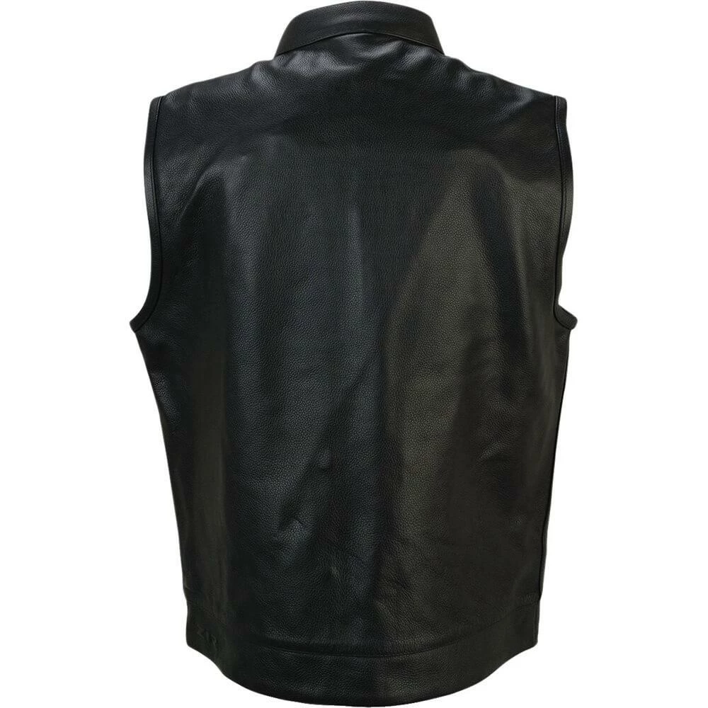 - One piece seamless leather back panel with zipper access for easy embroidery or patch application