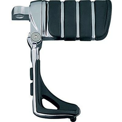 Switchblade Footpegs are sleek, versatile, and supremely comfortable. In their standard compact mode, they are a large-surface-area, rubber-isolated footpeg. Deploy the concealed heelrest, and now you have the added fatigue-fighting comfort of the famous Küryakyn ISO-Stirrups. Although this setup will work in any peg location, these are the ideal footpegs for bikes using forward controls or as forward mounted cruise pegs!