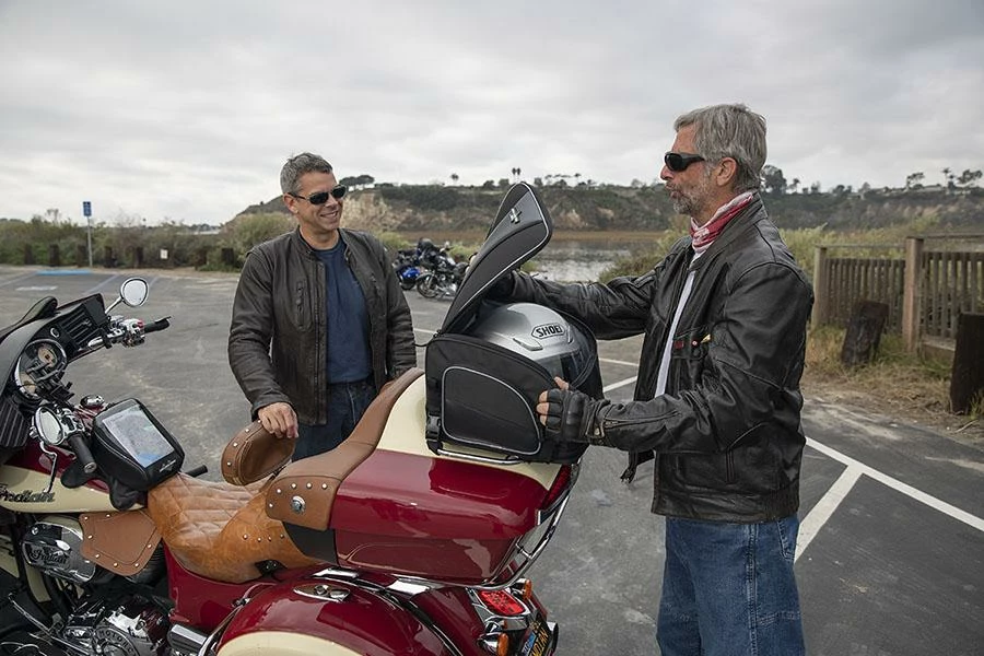 - Mounts to luggage/tour trunk racks, sissy bar or seat using quick release and self-fastening straps