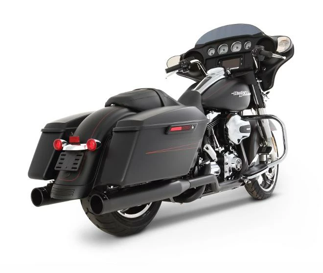 Fitted with 12mm and 18mm O2 sensor ports for 2009 and 2010-later fitments, giving your dyno tech the perfect place to obtain an accurate reading of your air/fuel ratio. Customize with 3.5” or 4” mufflers, and a combination of black or chrome headers, mufflers, and end caps. Full-length, one-piece heat shields are designed to move heat away from rider’s and passenger’s legs.
