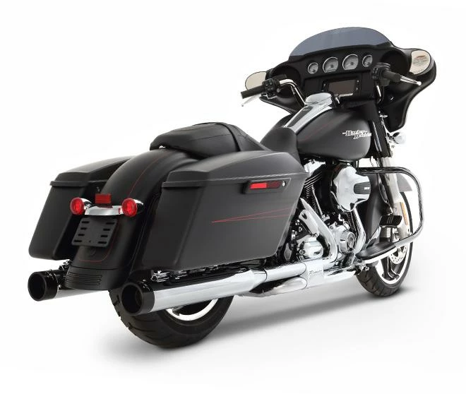 Our Slimline Duals give you increased torque and horsepower over stock pipes. Customize with your choice of chrome or black headers, chrome or black Rinehart Racing Slip-Ons and chrome or black end caps. Features a Rinehart Racing Laser Cut Heat Shield.