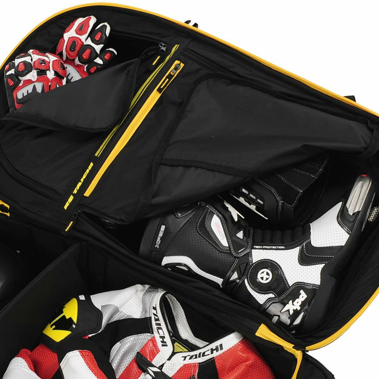 The RS Taichi Wheeled Gear Bag RSB266 features a heavy duty 1680D nylon construction with a 120L capacity. This wheeled gear bag incorporates a storable handle, smooth roller, padded divider to separate the main compartment, and a business card size holder on the side.