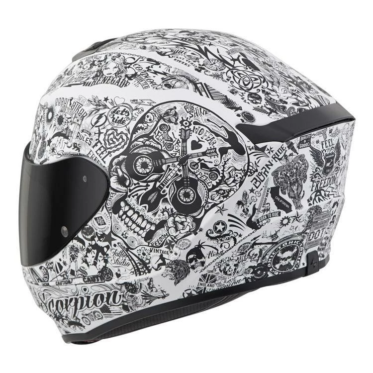 The EXO-R420 helmet continues to set a new standard for Scorpion EXO®’s full face street helmets at a very competitive price point. An all new advanced LG® polycarbonate shell is more aerodynamic and smaller resulting in an ultra lightweight SNELL-approved helmet. The aero tuned ventilation system uses a large top vent and mouth vents engineered to allow more airflow to the riders head while maintaining low noise levels. The EXO-R420 now features our new Elliptec™ II faceshield with a latching shield locking mechanism located in the lower center of the shield. This makes the faceshield more secure and provides a tighter seal against the gasket. The faceshield can easily be removed without tools, and the EverClear® No-Fog coating helps keep your vision clear in cold and damp environmental conditions. The KwikWick® II comfort liner is moisture wicking, anti-microbial, quick drying and can be easily removed and is machine washable.