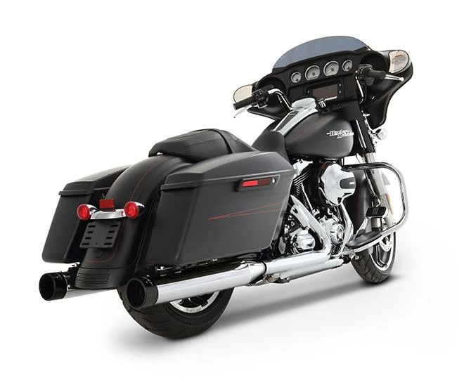 The look and the sound that started it all. Rinehart Racing mufflers are known worldwide for their distinctive sound and appearance. Rinehart Slip-Ons feature the same race-proven muffler and baffle design as their big brother touring systems, in an easy-to-install package. Complete the look of your touring model Harley-Davidson with your choice of 3.5” (’95 to ’09) or 4” (’95 to current) mufflers in chrome or black, and finish off with chrome or black exclusive Rinehart Racing logo end caps.