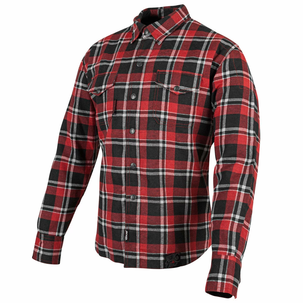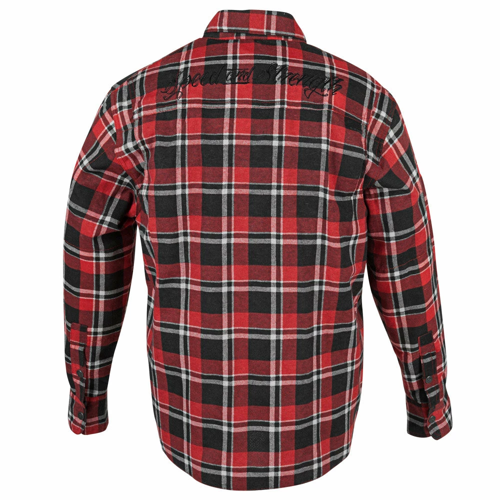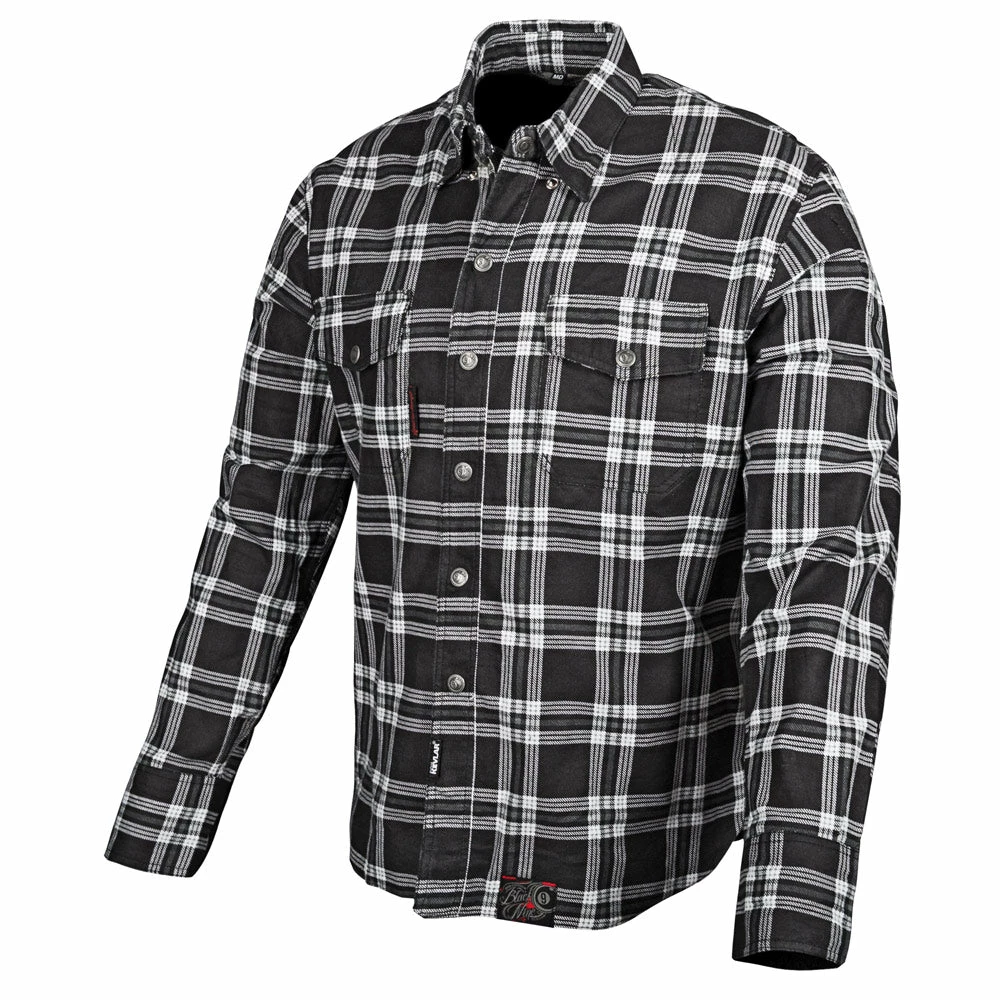 The Speed and Strength® Black Nine™ reinforced moto shirt features a cotton-poly blend frame with a snap down collar and hidden YKK main zipper opening. The shoulders and elbows are reinforced with aramid fiber thread with expansion gussets in the shoulders allowing for minimal movement restriction.