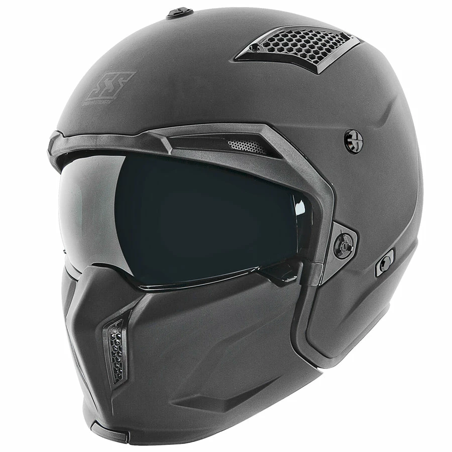 Custom built using a lightweight E.C.E/DOT certified, thermo-poly alloy shell, The Speed and Strength® SS2400 Tough As Nails™ helmet features a single action removable chin bar, air strike™ direct course ventilation system and tri-tech™ adjustable 3-stage visor. To keep things comfortable, we’ve included a removable and washable moisture wicking liner. As a bonus, the Tough As Nails™ SS2400 helmet comes equipped with clear and color matched iridium shields.
