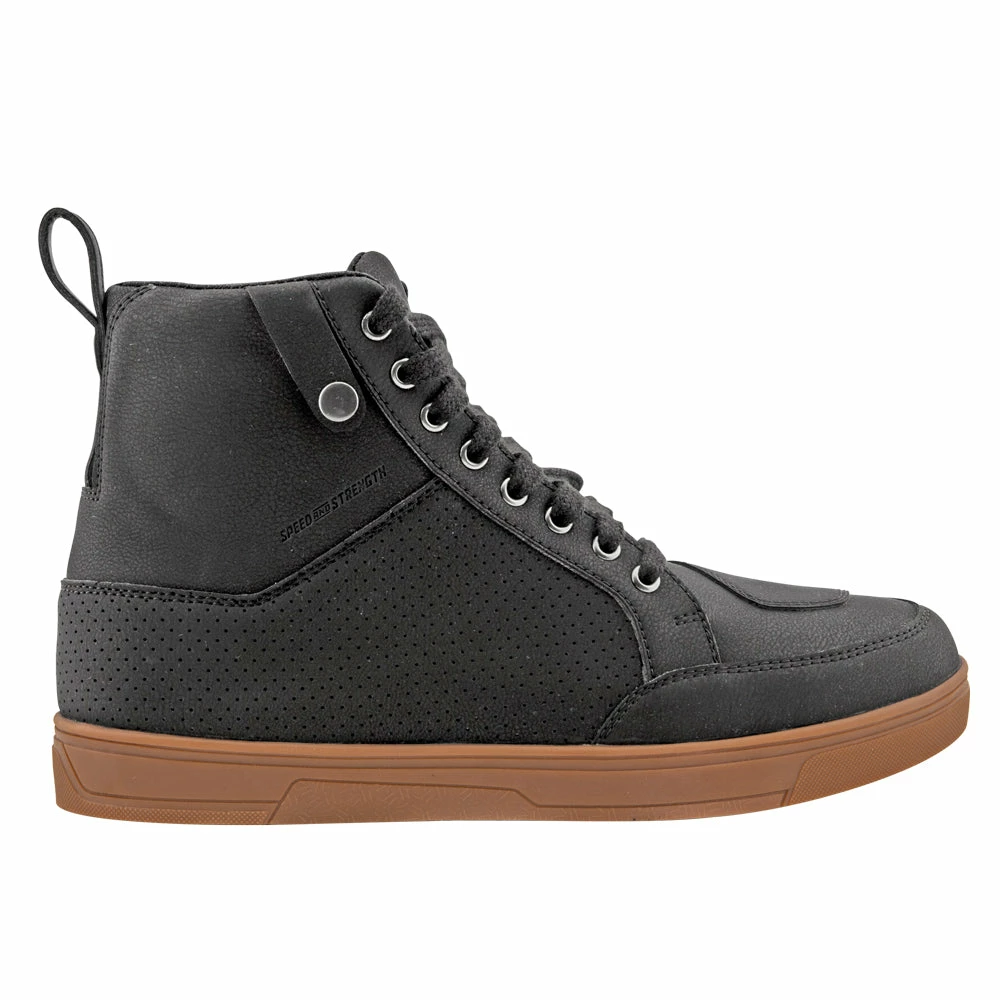 The United By Speed™ moto shoe from Speed and Strength® delivers on its promise of supreme protection without sacrificing your comfort or style. Built with a synthetic microfiber leather upper, we’ve added an internal breathable mesh lining as well as perforated panels on the outside. For increased performance, the shoes come equipped with molded C.E. approved internal ankle, toe and heel protection as well as a convenient lace-loop snap, to help avoid any unwanted snags.