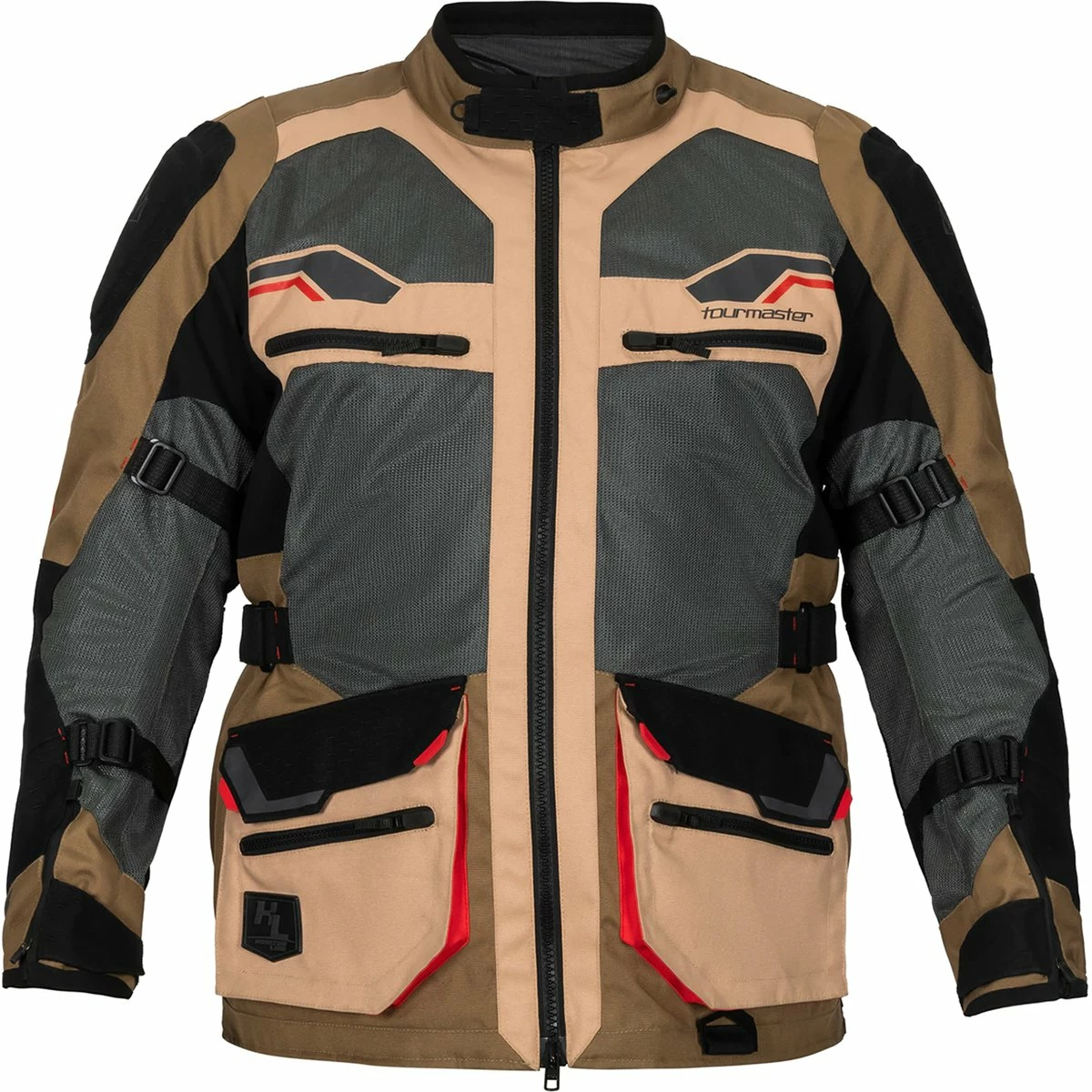 - Exterior storage includes front cargo pockets, zippered hand pockets, zippered small items pocket, a rear oversized storage pouch, and a zippered rear pocket that doubles as a vent