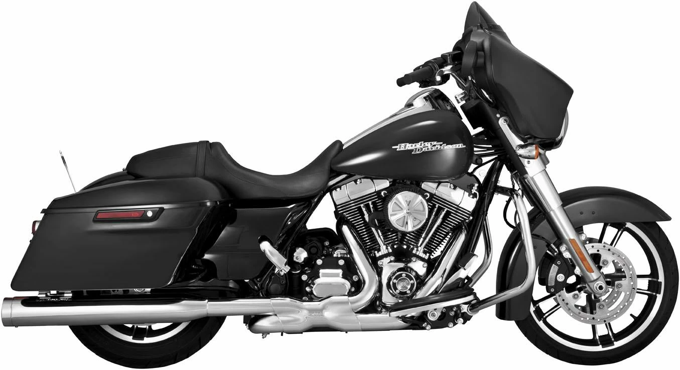 It’s time to get serious about the performance of your FL. Power Duals are your ticket to style, quality and performance. More than just individual head pipes, Power Duals integrate an exclusive Vance & Hines Power Chamber hidden behind a contoured heat shield that generates more horsepower and torque than stock. This new right side design eliminates the heat issues on the left side for the passenger, routing hot exhaust gases below the footpeg and protecting vital engine components and side covers from heat damage. Power Duals are fitted with oxygen sensor ports making it a seamless power upgrade from stock. For the most complete performance package, pair Power Duals with any of the Vance & Hines slip-on mufflers designed specifically for the 2010-Up Touring models.